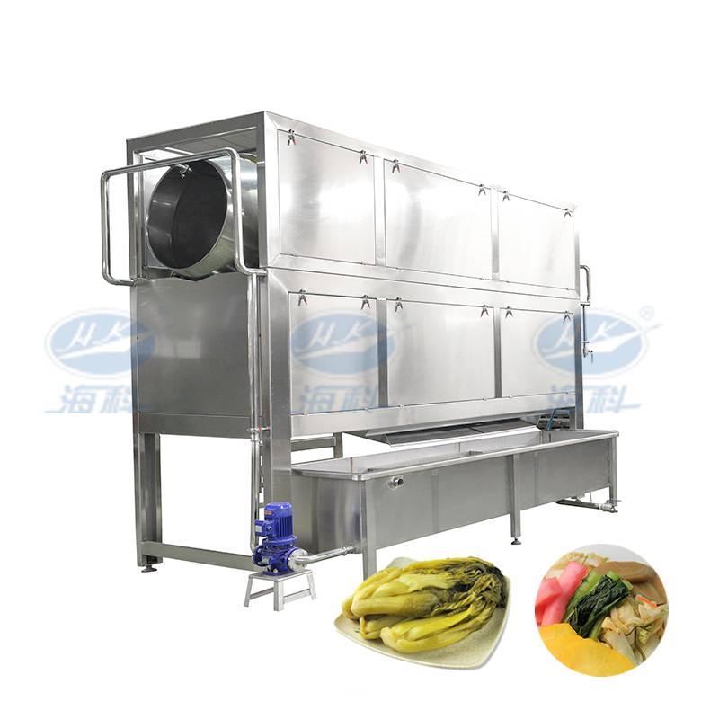 该产品适用于酱腌菜根茎类盐渍后原料的清洗工艺,采用合理的筋肋滚筒结构,配有上喷淋机构,并设置水循环系统,节约水资源,改善生产环境,降低劳动强度,是根茎类酱腌菜原料清洗的理想装备。