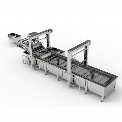 HKJD系列解冻机是根据客⼾需要及物料特征量⾝设计的⾃动化解冻设备,整套设备配有物料⾃动翻转装置、溢流装置、过滤装置、疏松物料装置、清洗装置等。设备采⽤双极传动、输送速度稳定、实现了⾃动连续⽣产的⽬的,且可随时调控,输送⽹采⽤⾼强度优质不锈钢,结构牢固、承载物料重,打破了传统的解冻⽅法,极⼤的提⾼了解冻效率。该设备造型美观、结构合理、操作维护⽅便